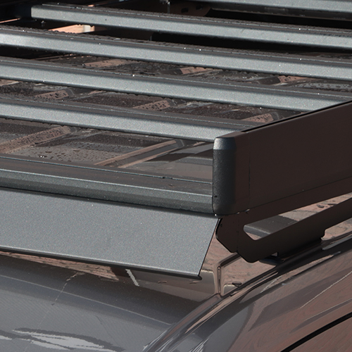 The Volkswagen Caddy roof platform has a slim design that only builds 156 mm from the roof attachment, allowing you to easily get up and load on the roof. Comes standard with front spoiler to direct air over the roof platform. The entire roof platform is black anodized to provide a durable and stylish black finish.