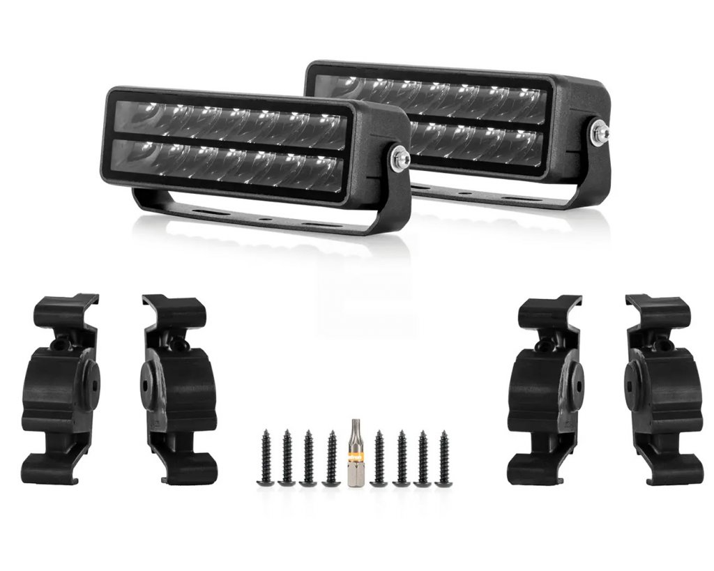 This package includes the model-specific brackets for the grille and two Lumen SQ16 LED light bars.