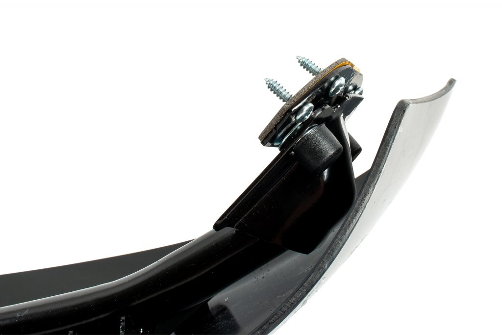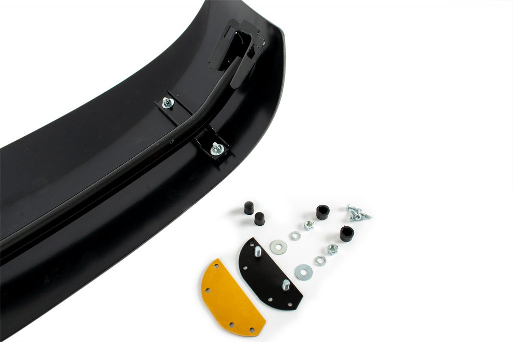 The plastic part of the sun visor is then mounted in the mounting details with bolts, washers and nuts, and finished with a high-gloss black cover in the same material as the sun visor to cover the screws.