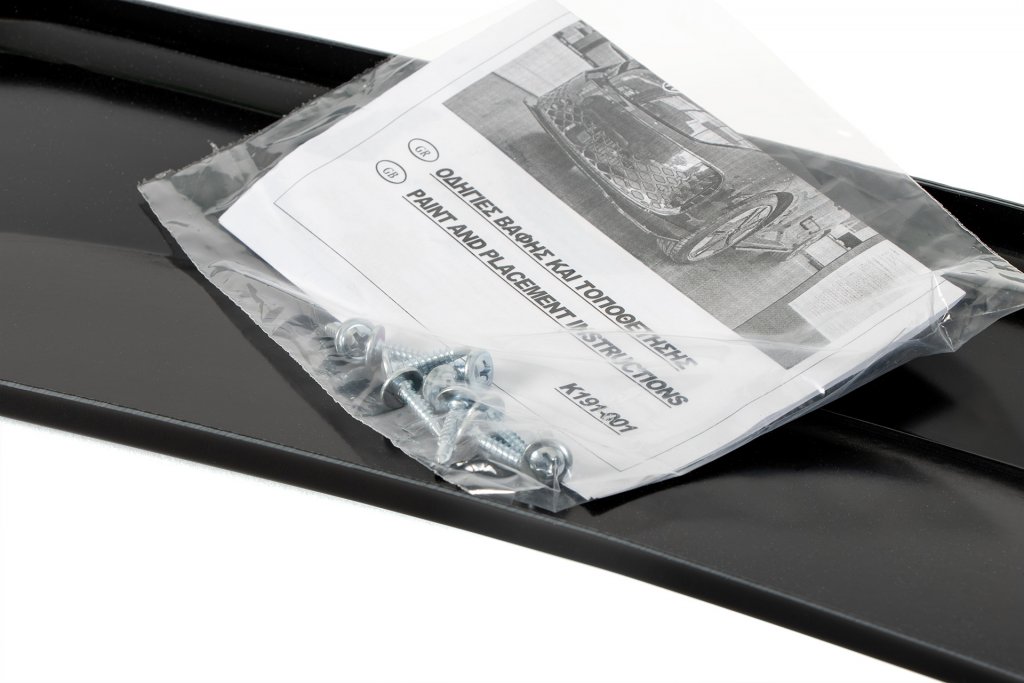 The front splitter is made of ABS plastic, which guarantees both durability and flexibility. It is mounted with self-drilling screws under the front bumper, making installation smooth and quick.