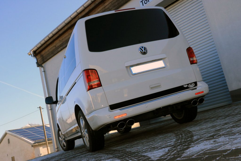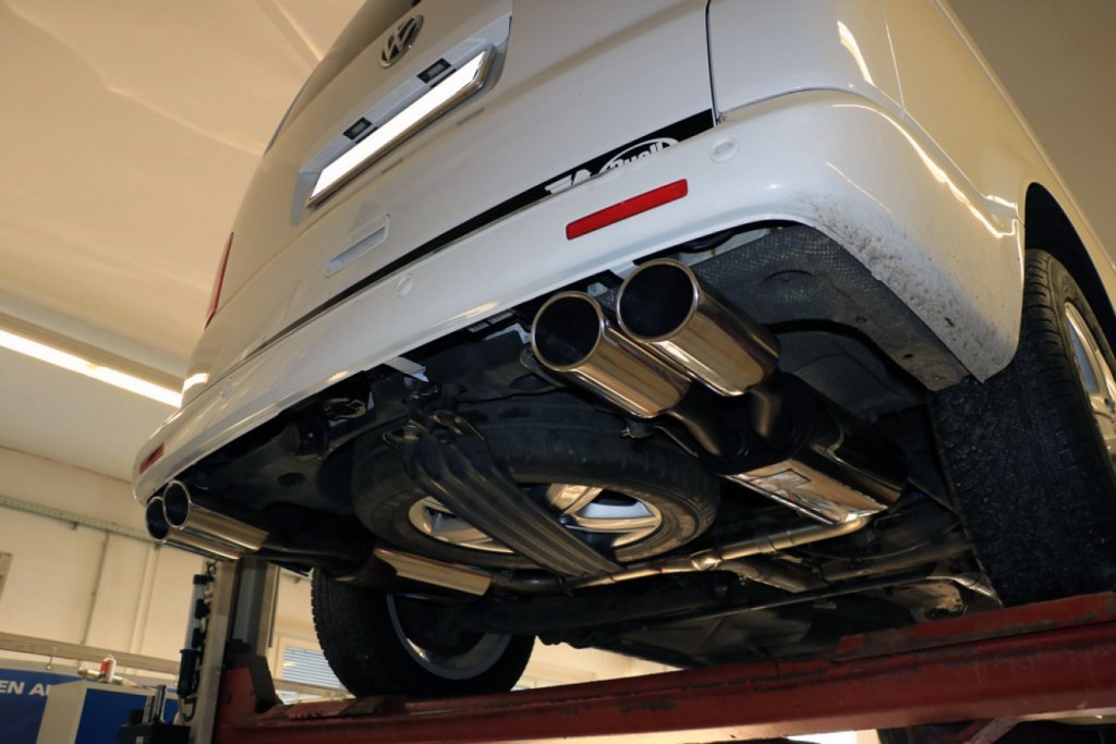 The exhaust system is suitable for Volkswagen Transporter T5/T6/T6.1 from model year 2003-2024 with 2.0l, 3.2l, 1.9TDI, 2.0TDI or 2.5TDI engine.