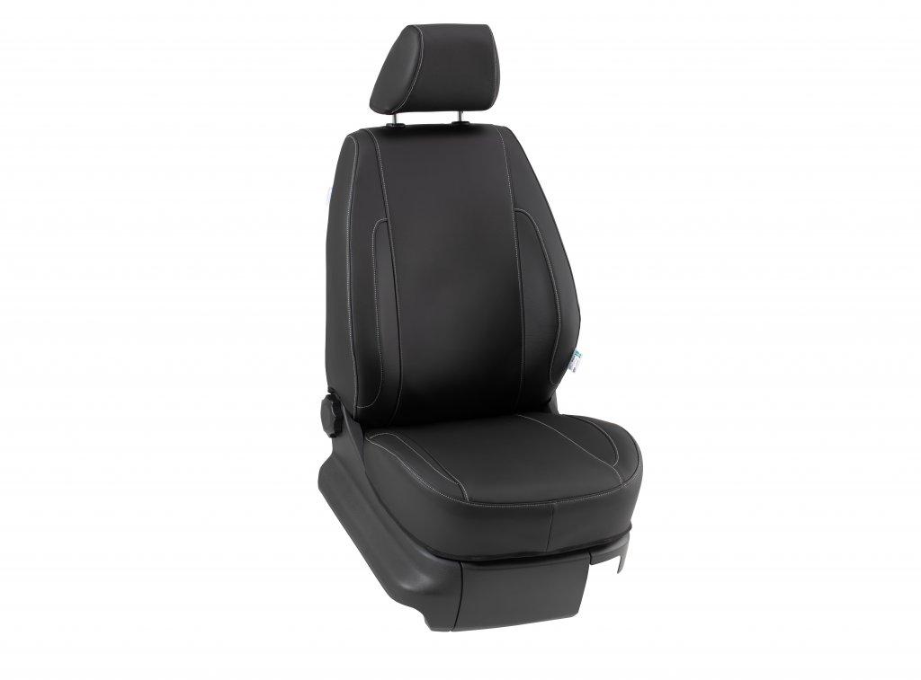 Model-adapted Car Seat Cover for the driver's seat in a stronger version for Volkswagen Transporter T5 from 2003-2009. Supplied complete for the driver's seat incl. upholstery for the headrest.