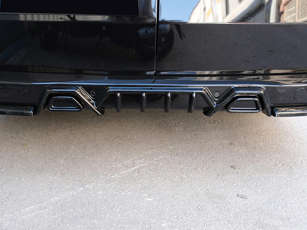 The diffuser is made from through-moulded ABS plastic, providing a durable and weather-resistant surface that retains its appearance over time. The aerodynamic design reduces drag and can contribute to improved fuel efficiency. The high-gloss black finish gives a sleek and aggressive impression, enhancing the car's aesthetic profile.
