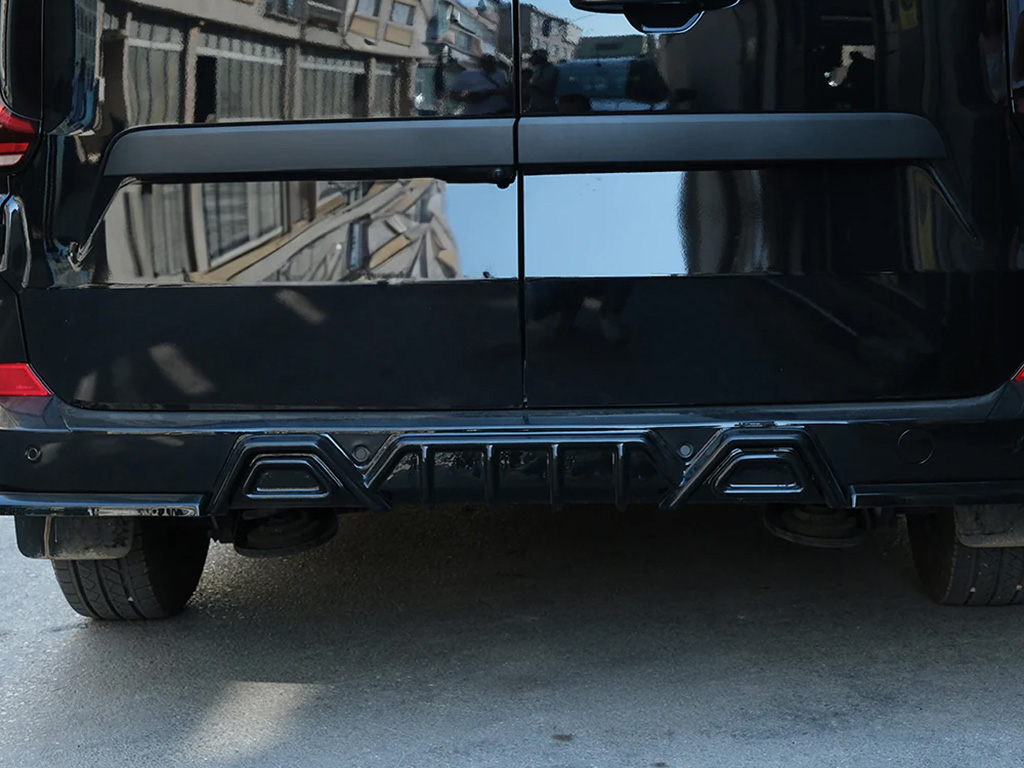 Give your Volkswagen Transporter T7 from 2024 onwards a sportier and more distinctive look with this high quality rear diffuser. Made from durable ABS plastic with a glossy black finish, this diffuser is designed to blend seamlessly with your car's original bodywork.