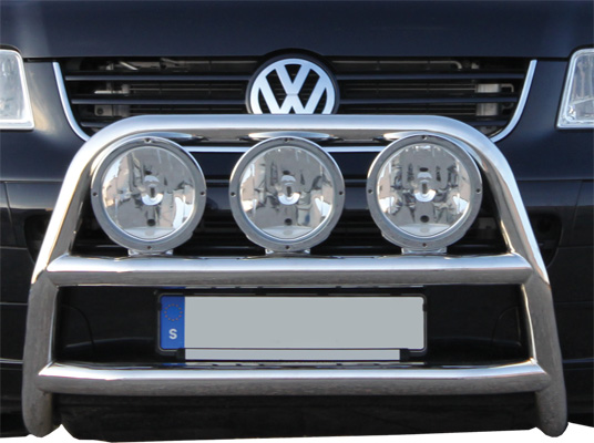 You can find similar products hereStylish classic bull bar for Volkswagen Transporter T5 from 2003-2009. Bull bar made of stainless steel with smooth welded joints. The following finishes are available for the frame: