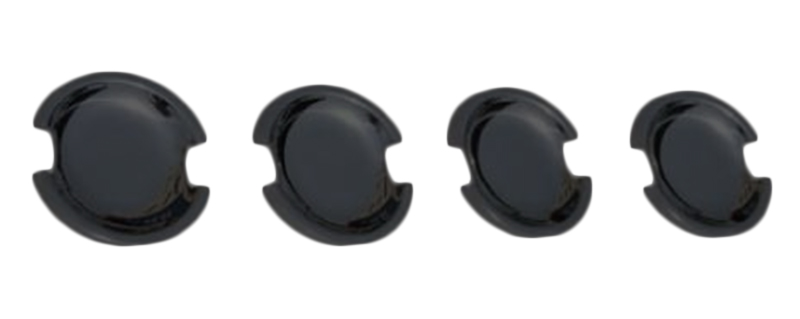You can find similar products hereStylish details for mounting behind the door handles of your VW Transporter T5 from 2003-2015. The finish is Gun Metal Black, which gives a glossy black surface.