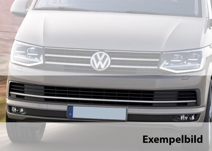 Grill parts in highly polished stainless steel, for mounting on the lower grill. The parts fit Volkswagen Transporter T6 from 2016-2019 with painted bumper.