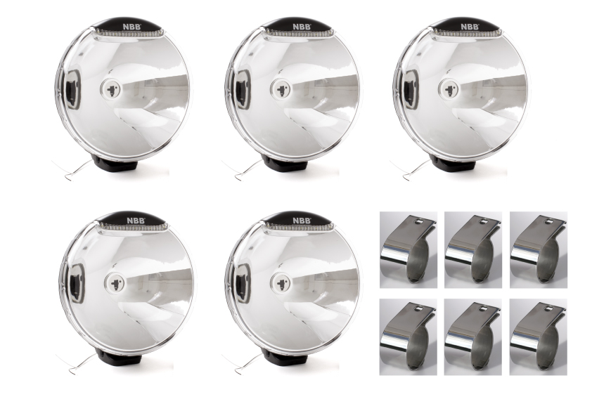 The following Extra Light Box includes 6 NBB Alpha 225 Xenon with a wide light pattern. Together with the lights, we also deliver six clamp brackets in stainless steel, intended for your front and roof arch.