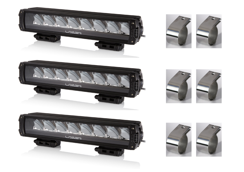 The following Extra Light Box includes 3 Lazer Triple-R 1000 with position lights. Along with the lights, we also supply stainless steel clamps and mounting plates.