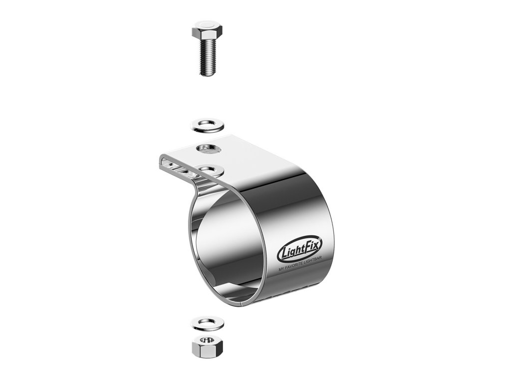 Clamp brackets for flexible mounting of e.g. auxiliary lights, warning lights or work lights.
