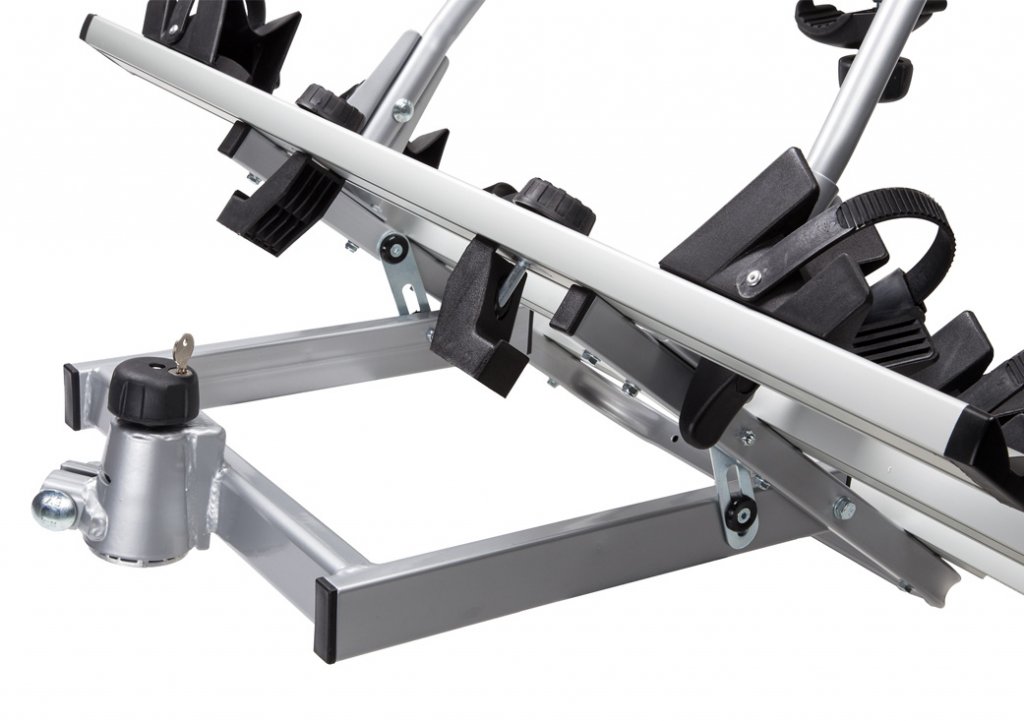 The folding mechanism allows you to easily enter the tailgate by folding the entire holder backwards. You simply unscrew two steering wheel nuts located at the rear of the bike rack (towards the tailgate) and then fold the entire bike rack backwards.
