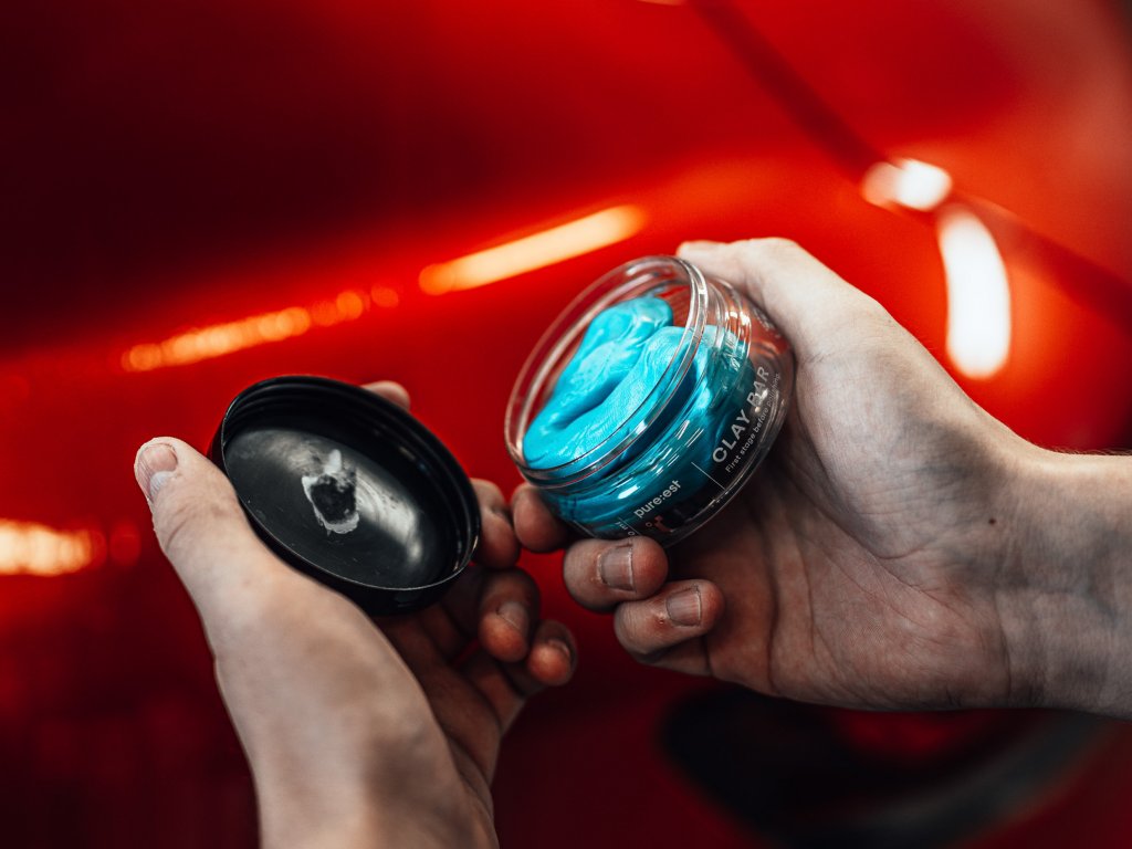 By applying the paint directly with a clay bar, you can pick up dirt that previously could not be removed and thus prepare the car for polishing and paint protection as a final step. You'll be shocked at how much dirt gets stuck in the mud!