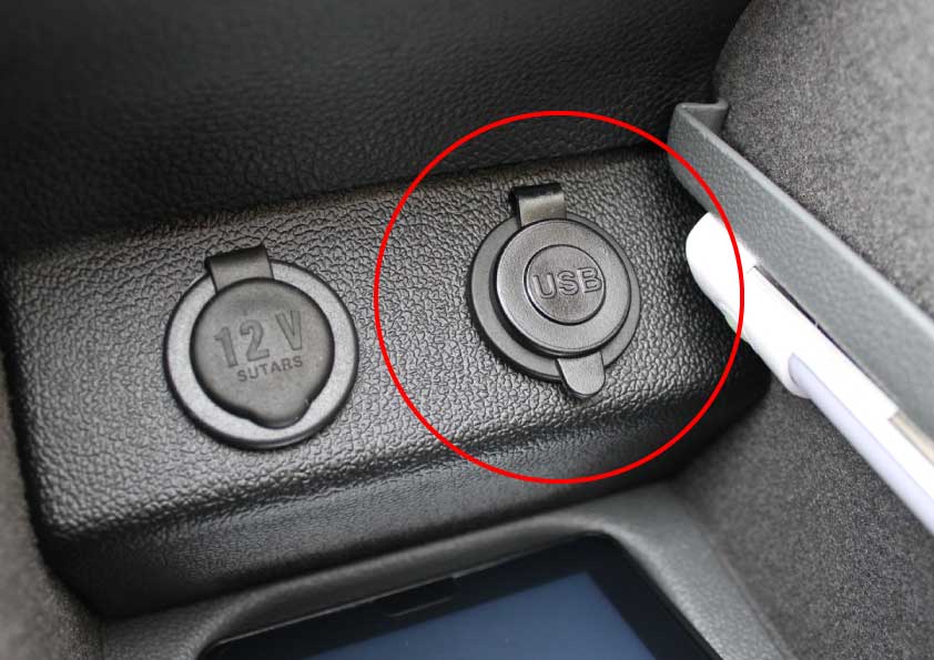 You can find similar products hereFunctional dual 5V USB socket, neatly integrated inside the center console. A slot below the armrest allows you to route cables to discreetly utilize the sockets.