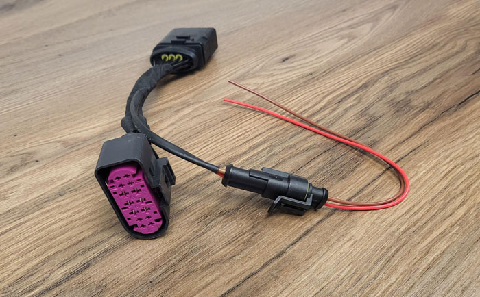 Extra light adapter for easy connection to Volkswagen (14-pin). For high beam & position light signal.