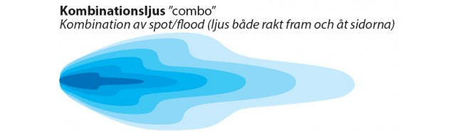 The LED light has a combined light image is a mixture between high beam (length) and river light (width) The extra light has diodes that reflect the light between the sides and straight ahead, which creates an ideal image if you want a lot of light close to the vehicle but also have the length to illuminate the road far ahead.