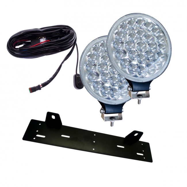 For easy installation, a mounting plate and DT relay are included. The mounting plate is easily hidden behind the number plate and is made of steel that is powder coated for long life. The DT relay makes a very simple installation of the auxiliary light on the car's high beam, so that the lights are controlled by the high beam. This means that the only thing you need in addition to the auxiliary light kit is a couple of bolts to attach the mounting plate!