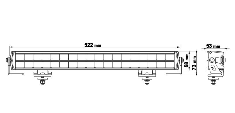 You can find similar products hereAlfa 20" Powerboost lets you choose whether you want to run E-mobile (ECE R112) with 1 lux brightness at 468 meters or with extra power in the light with Powerboost activated and 1 lux at 744 meters (not E-rated). You easily activate the stronger Powerboost option by triggering a switch at the ATP connector.