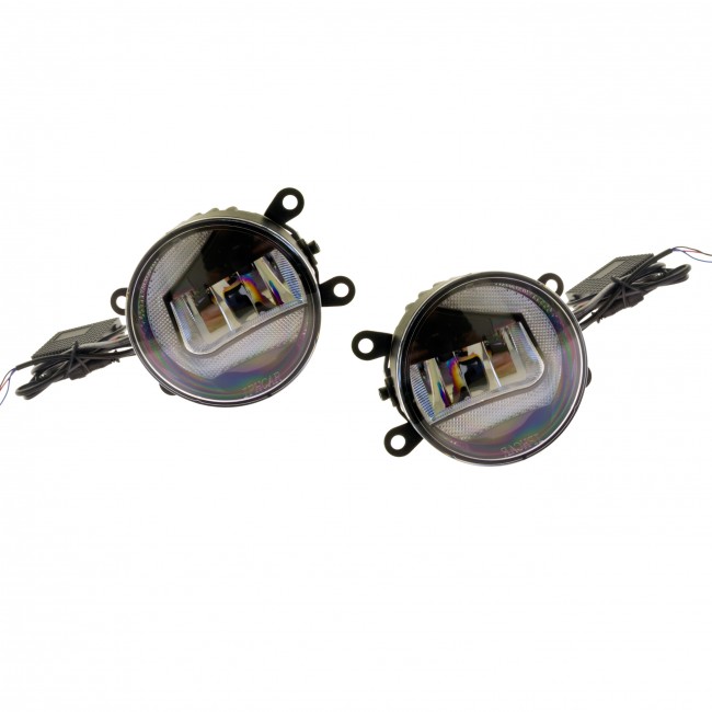 You can find similar products hereStylish modern DRL lamps with universal fit! When you start the engine, only the parking lights get on the lamps, and when the fog lights are turned on, the whole lamp lights up. The lamp provides a good and focused light in fog light mode.