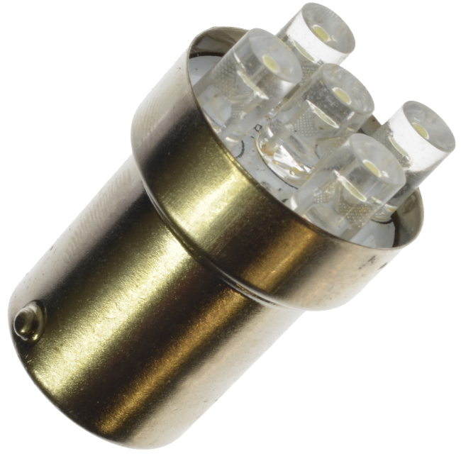 Diode lamp with very long life. Replaces 5W incandescent lamps with BA15s base. Gives a nice glow and provides good balance between directional and diffused light.