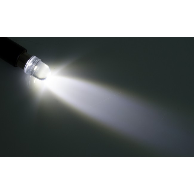 Long-life diode lamp with 1 strong diode equivalent to about 6W. The lens provides a directional light with narrow dispersion.