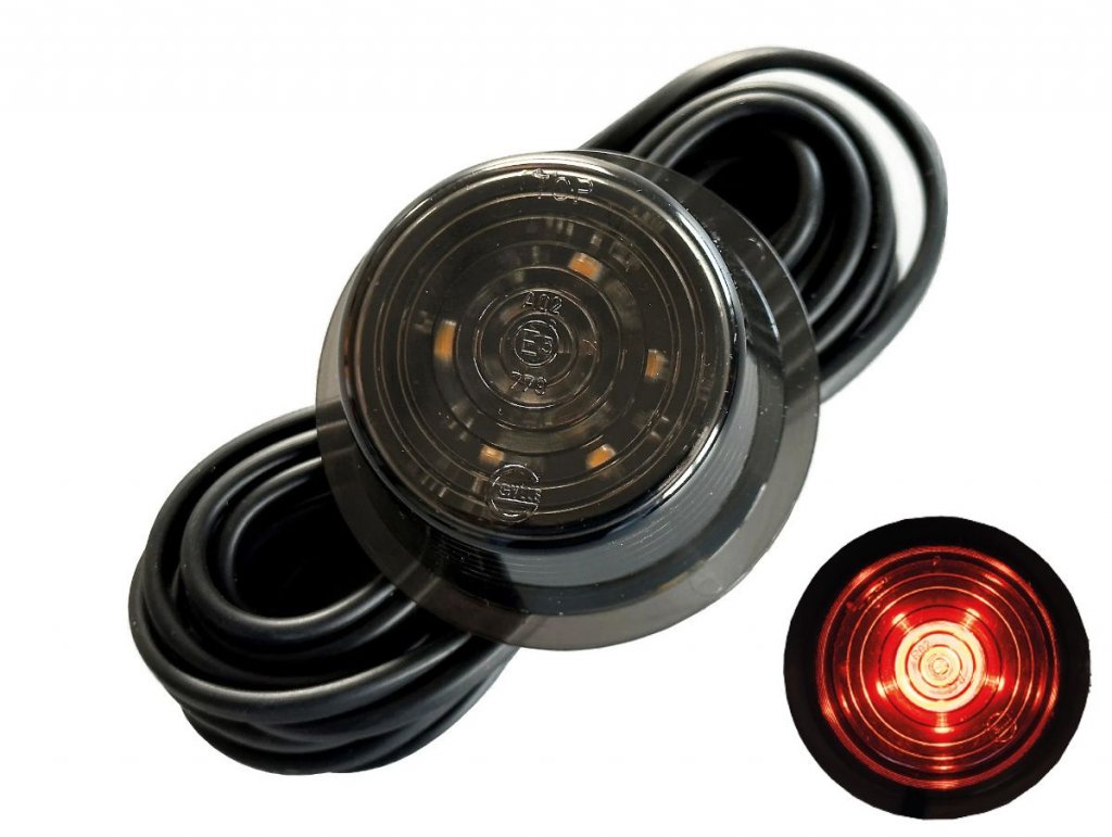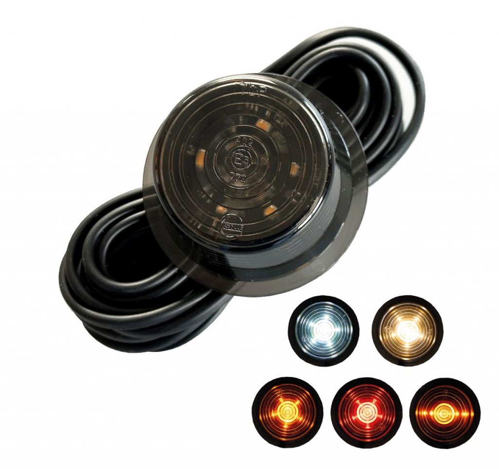 Gylle LED Black Line side marker light with smoke colored glass for mounting in rubber arms. Works for all rubber arms with 60 mm diameter (e.g. Gylle, Grimsheden and Hella).