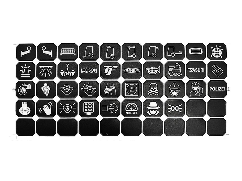You can find similar products hereA sheet of symbols for the LEDSON Commander remote control relay box.