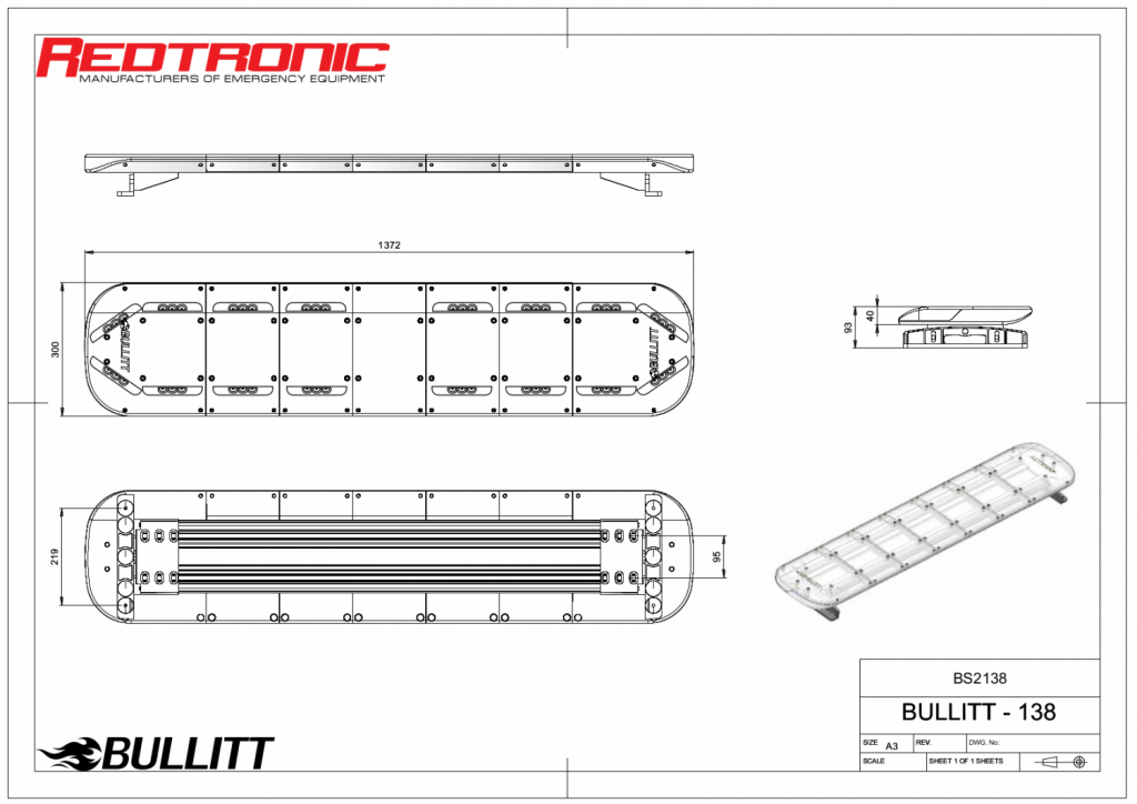 A Mega-Flash Bullitt warning light bar always has the following features: