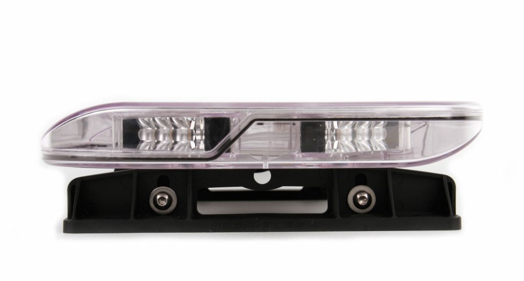 Bottom profile of injection molded aluminum and durable UV-stabilized polycarbonate lenses which withstand our Nordic climate and withstand very hard external stresses. Low and modern design for best aerodynamic properties. This saves fuel and thus reduces harmful emissions compared to a traditional warning light bar with high wind resistance. Resonance noise such as wind noise is also significantly reduced.