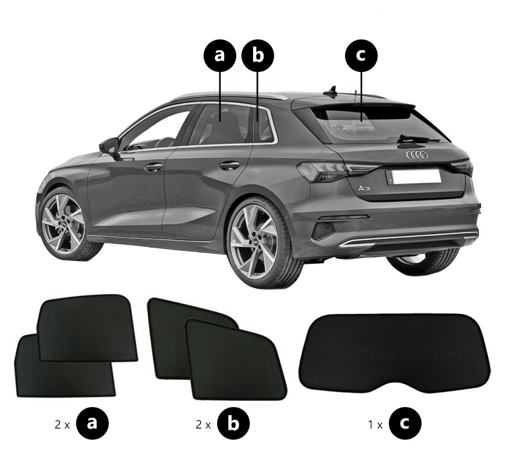 Sonniboy sun visors Audi A3 Sportback from 2021- for rear and side windows provide the best possible protection against heat and visibility in your car.