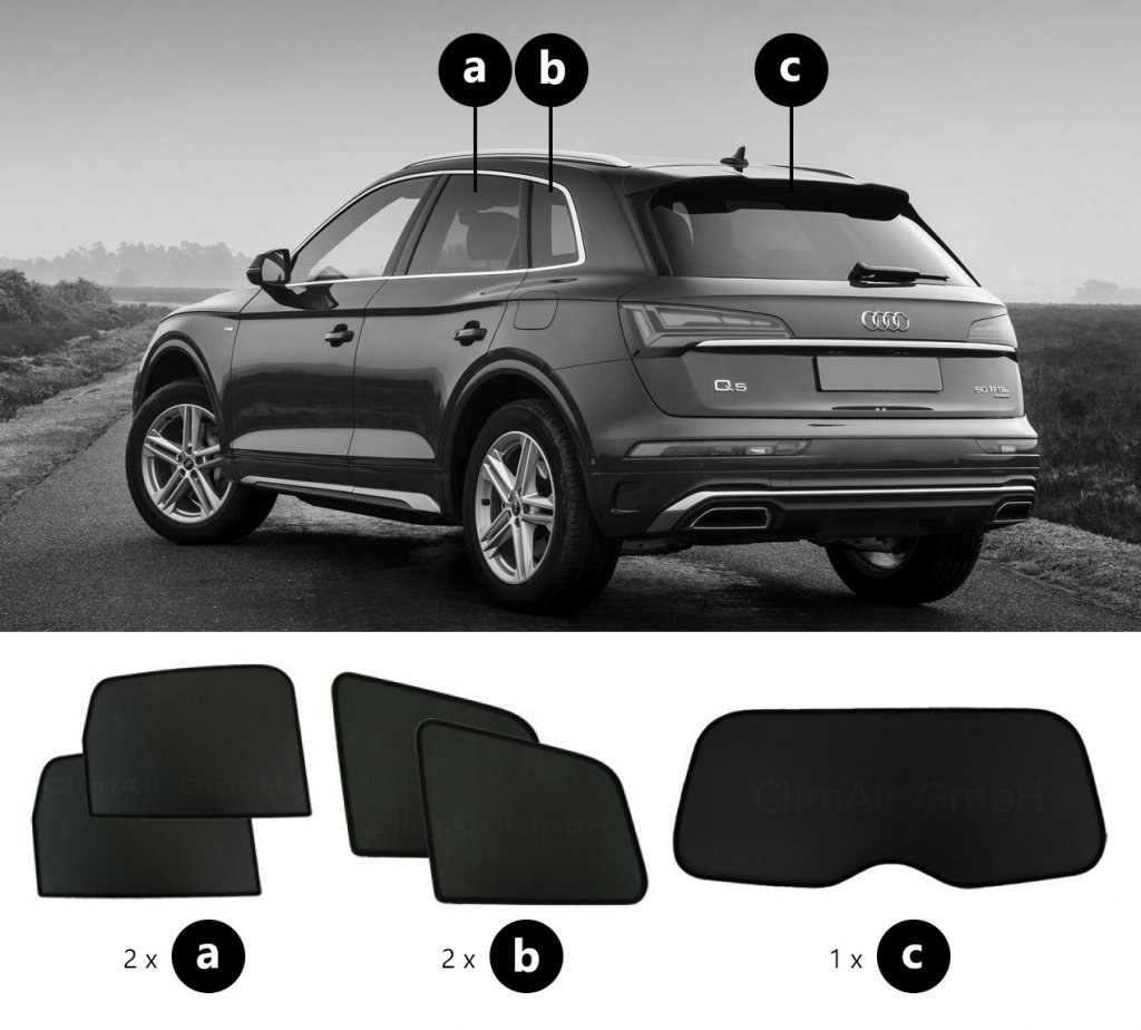 Sonniboy sun visors Audi Q5 from 2017 onwards for rear and side windows provide the best possible protection against heat and visibility in your car.