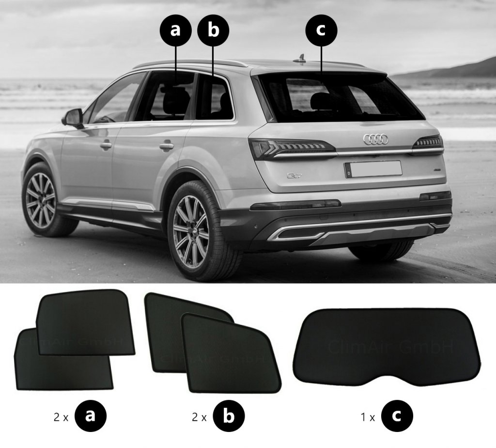 Audi Q7 sun visors are supplied as a complete set for the rear doors, side windows in the boot and boot lid.