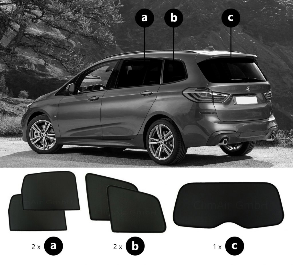 Sonniboy sun visors BMW 2 Series Gran Tourer from 2015-2021 for rear and side windows provide the best possible protection against heat and visibility in your car.