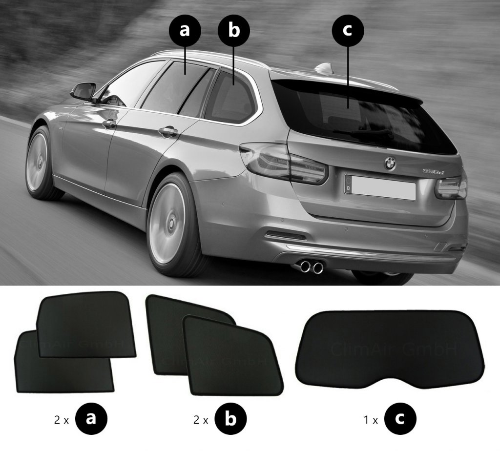 Sonniboy sun visors BMW 3 Series from 2013-2019 for rear and side windows provide the best possible protection against heat and visibility in your car.