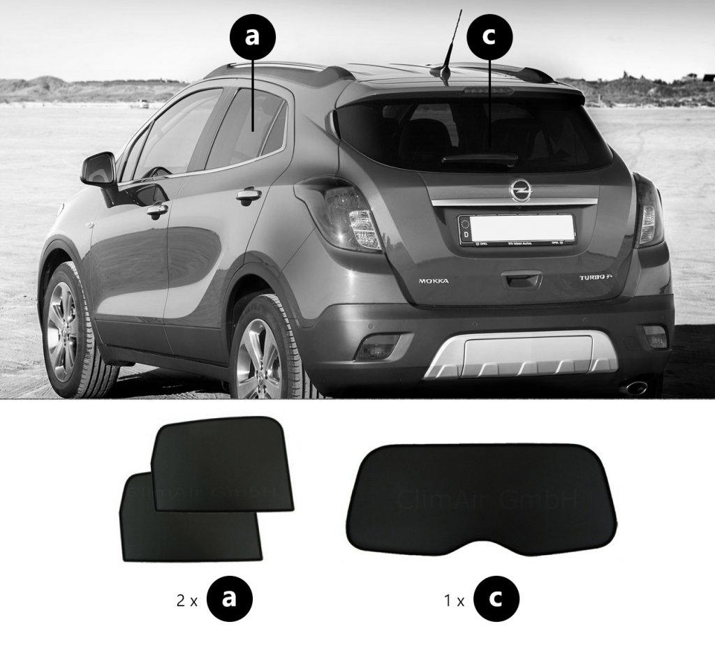 Sonniboy sun visors Opel Mokka from 2013-2020 for rear and side windows provide the best possible protection against heat and visibility in your car.