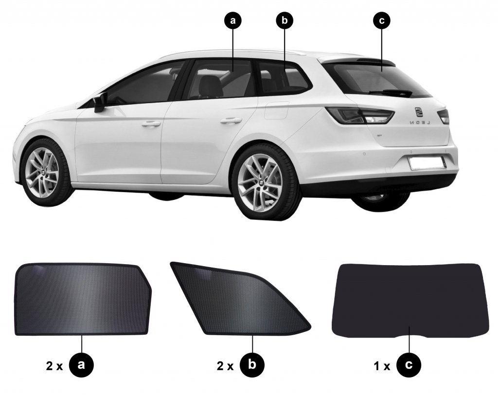 The Seat Leon sun visors are supplied as a complete set for the rear doors, side windows in the boot and the boot lid.