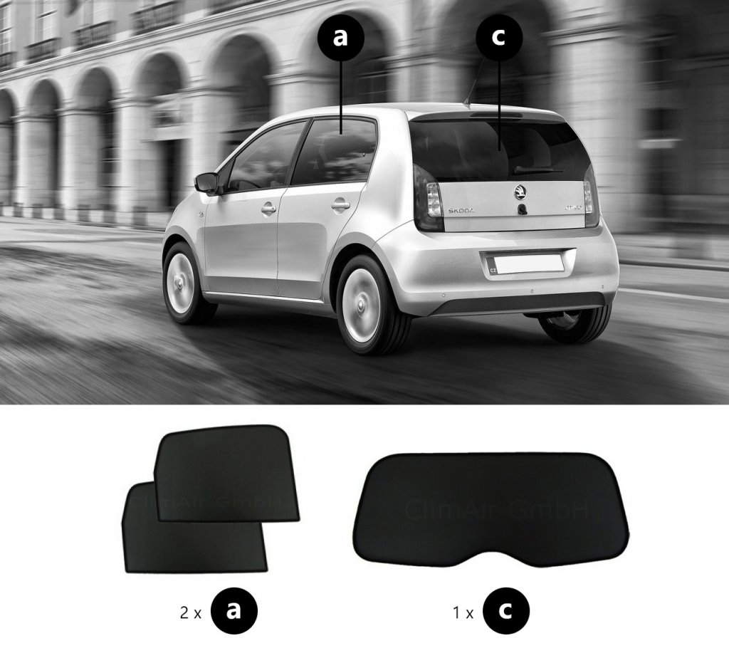 Sonniboy sun visors Skoda Citigo from 2011 onwards for rear and side windows provide the best possible protection against heat and visibility in your car.