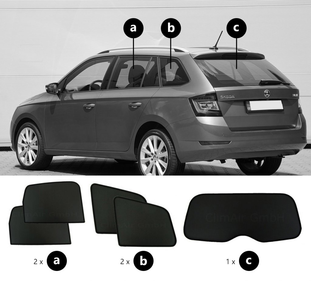 Sonniboy sun visors Skoda Fabia from 2015-2021 for rear and side windows provide the best possible protection against heat and visibility in your car.