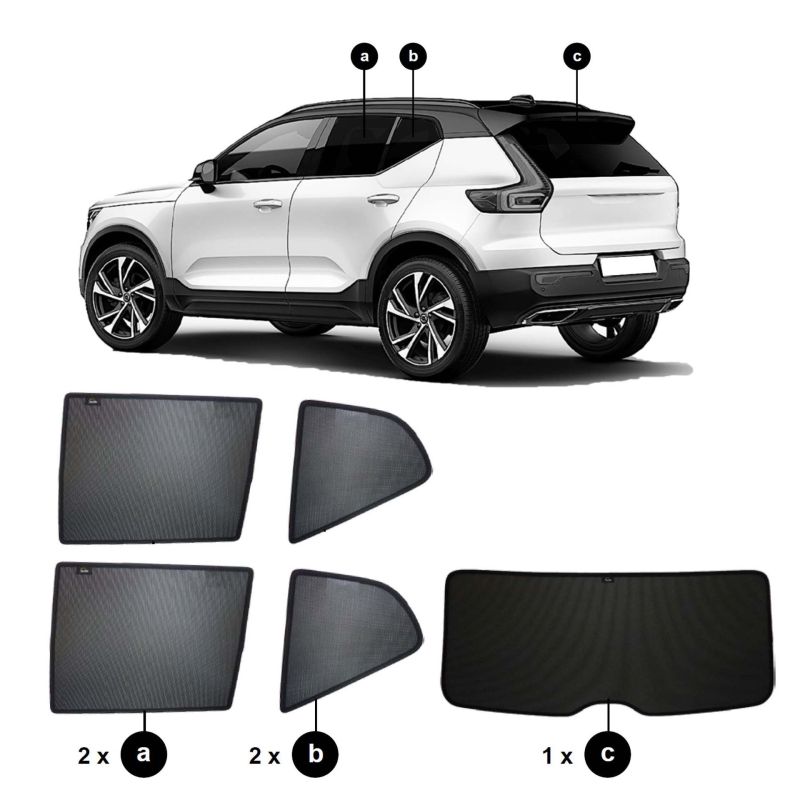 Volvo XC40 sun visors are supplied as a complete kit for the rear doors, side windows in the boot and boot lid.
