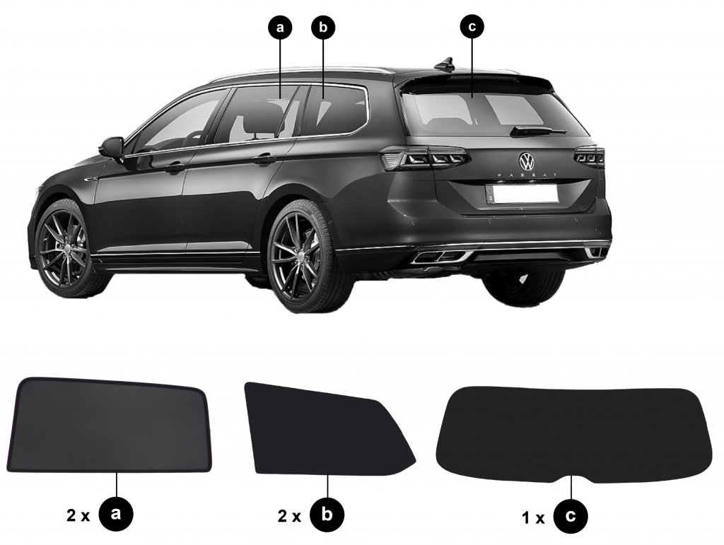 Volkswagen Passat sun visors are supplied as a complete set for the rear doors, side windows in the boot and boot lid.