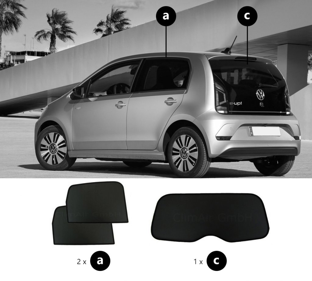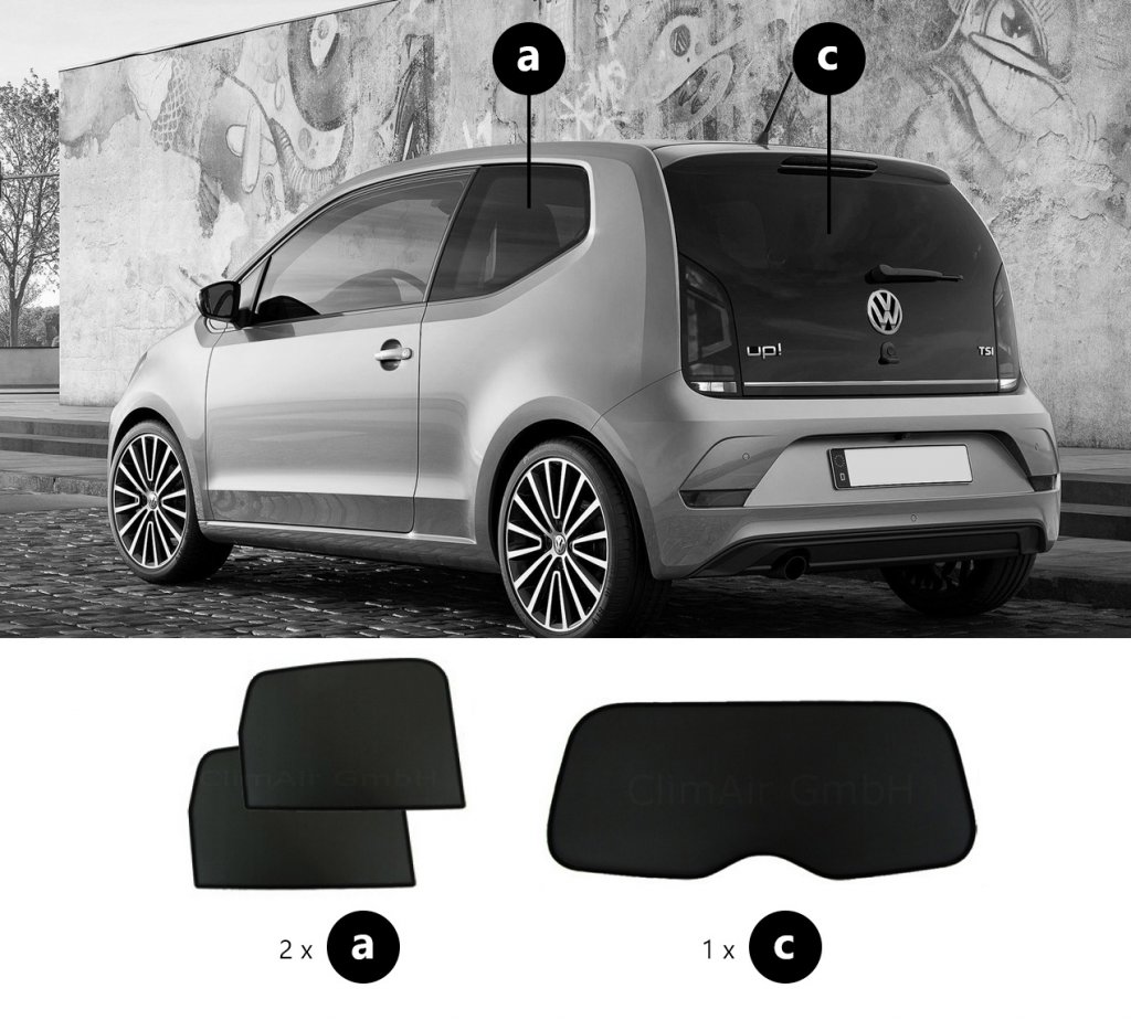 Sonniboy sun visors Volkswagen Up from 2012-2024 for rear and side windows provide the best possible protection against heat and visibility in your car.