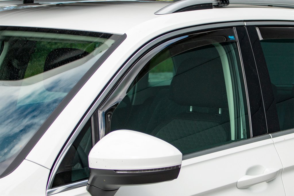 - The assembly is completely interference-free without tools. The Volkswagen Tiguan wind deflector is mounted in the side window frame without any clips or screws.