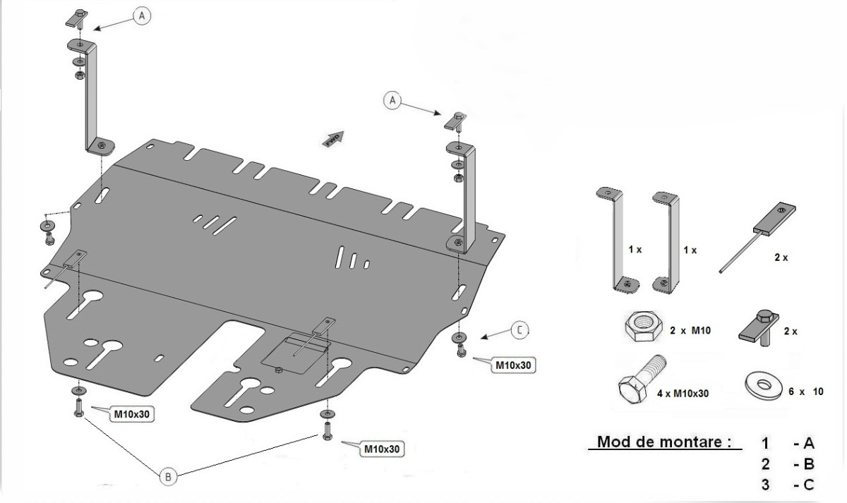 Made of 2 mm steel that is painted black for good corrosion protection. Installation is easily done in original mounting points without damage to your car. The Skid Plate has a service hatch for easy oil change.