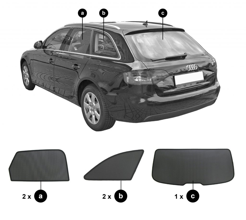 The Audi A4 sun visor is supplied as a complete set for the rear doors, side windows in the boot and boot lid.