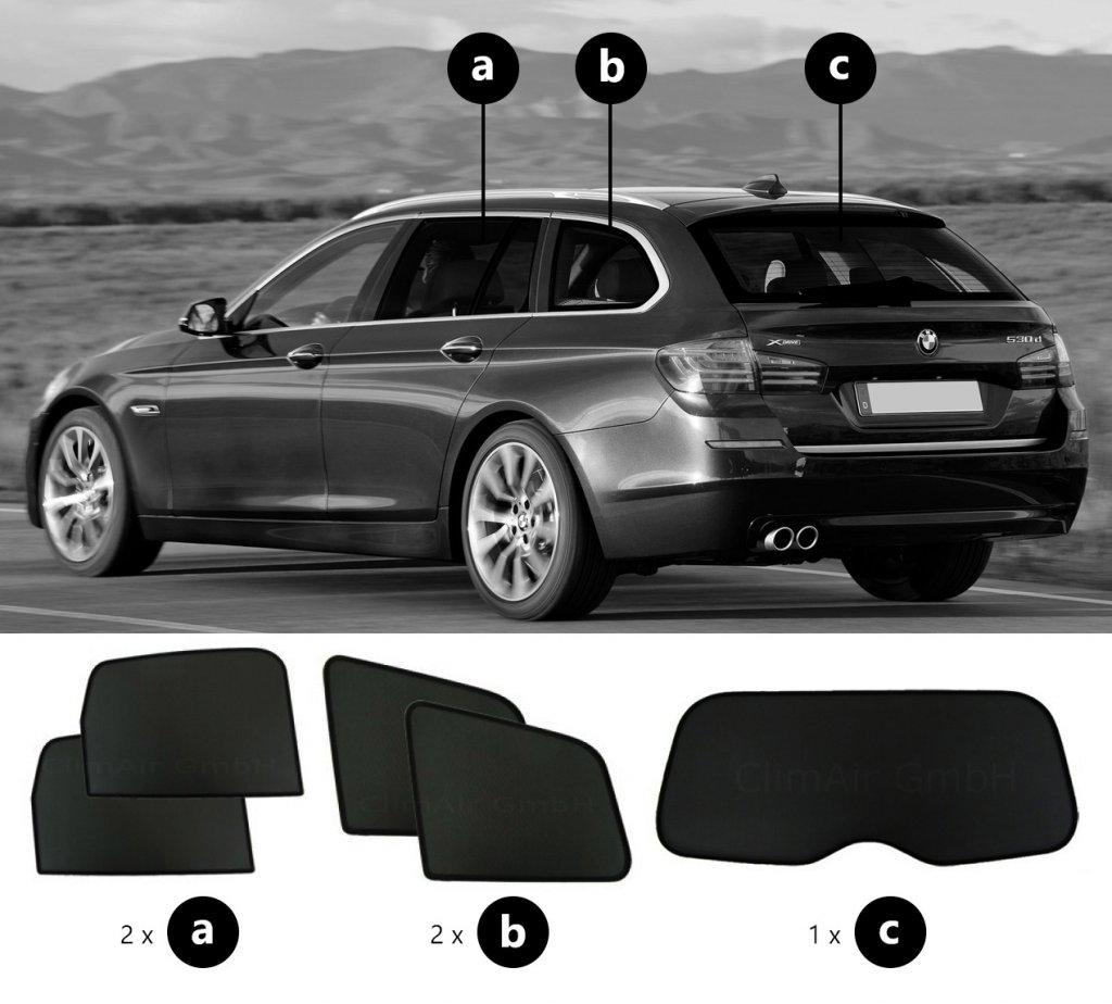 Sonniboy sun visors BMW 5 Series from 2010-2016 for rear and side windows provide the best possible protection against heat and visibility in your car.