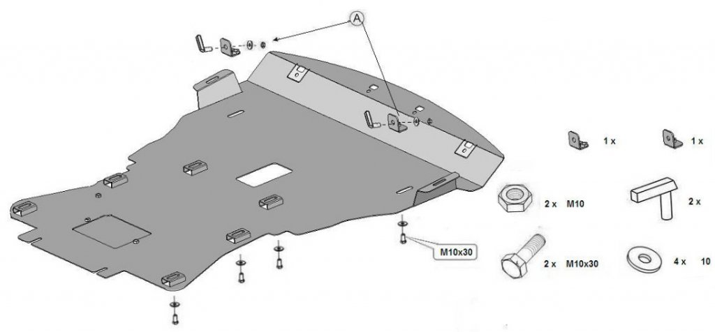 The Skid Plate is mounted very easily in the original attachment points and does not cause any damage to your car.