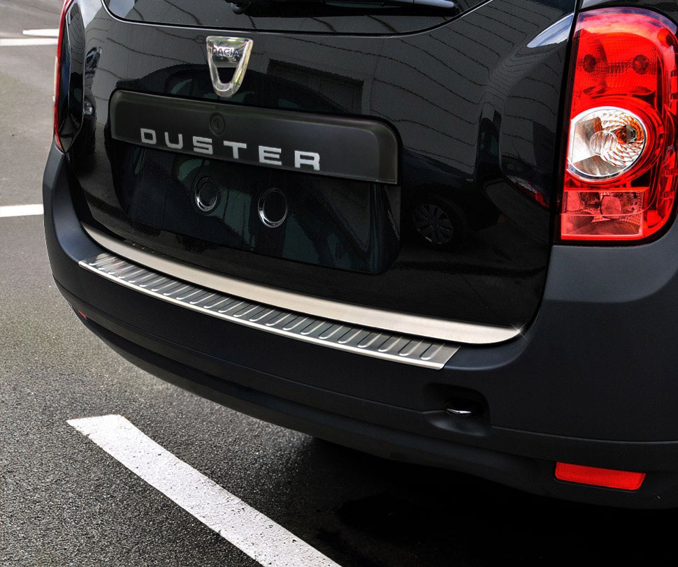Protect the rear bumper of your Dacia Duster with a stylish and durable stainless steel rear bumper protection. This accessory is designed to combine practicality with a stylish look, while effectively protecting your car from scratches, dents and wear during loading and unloading.