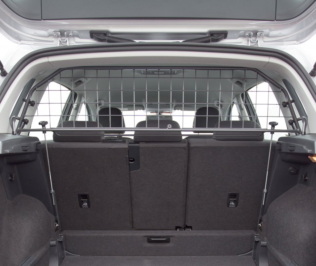 The dog guard Hyundai Santa Fe is mounted without any modification to your car. Feel secure with a safe barrier between the passenger compartment and the cargo area. Something as simple as the spare wheel in your car weighs the equivalent of 1200 kg in a collision at 50 km/h, which is like a small car flying through the cabin. With a dog guard, you ensure that your belongings and cargo stay where they are intended, in the trunk.