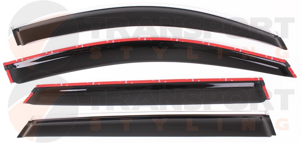 With wind deflectors fitted, you can keep the windows ajar, without rain or snow getting into the car. They also help to keep dirt away from the side windows, which of course then provides better visibility in the rear-view mirrors. Made of dark-tinted acrylic plastic.