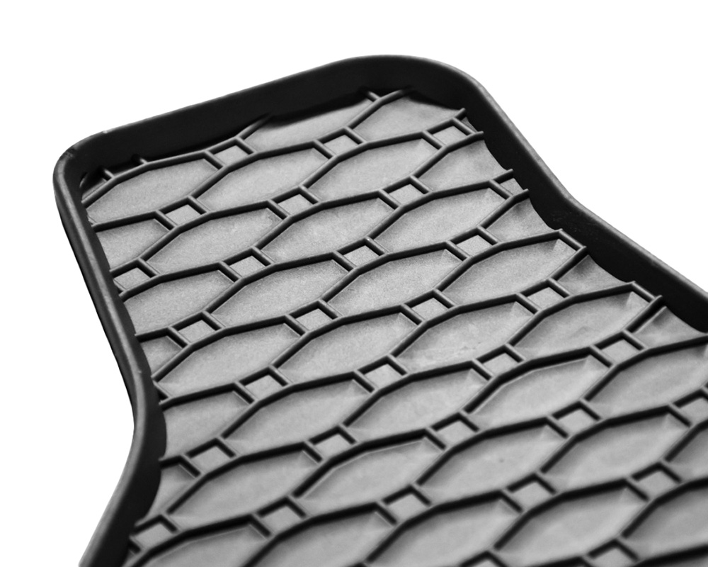 Stylish and practical rubber mats with raised edges to effectively protect the car's original floor mat from moisture, dirt, and liquids.
