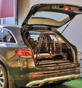 The dog cage Mercedes GLC is together with the harness (accessory) crash tested by SP National Technical Research Institute according to ECE-R17, a European standard for the securing of loads in vehicles. This means that the dog cage fulfils all safety requirements and gives you and your dog extra security in the event of a collision.
